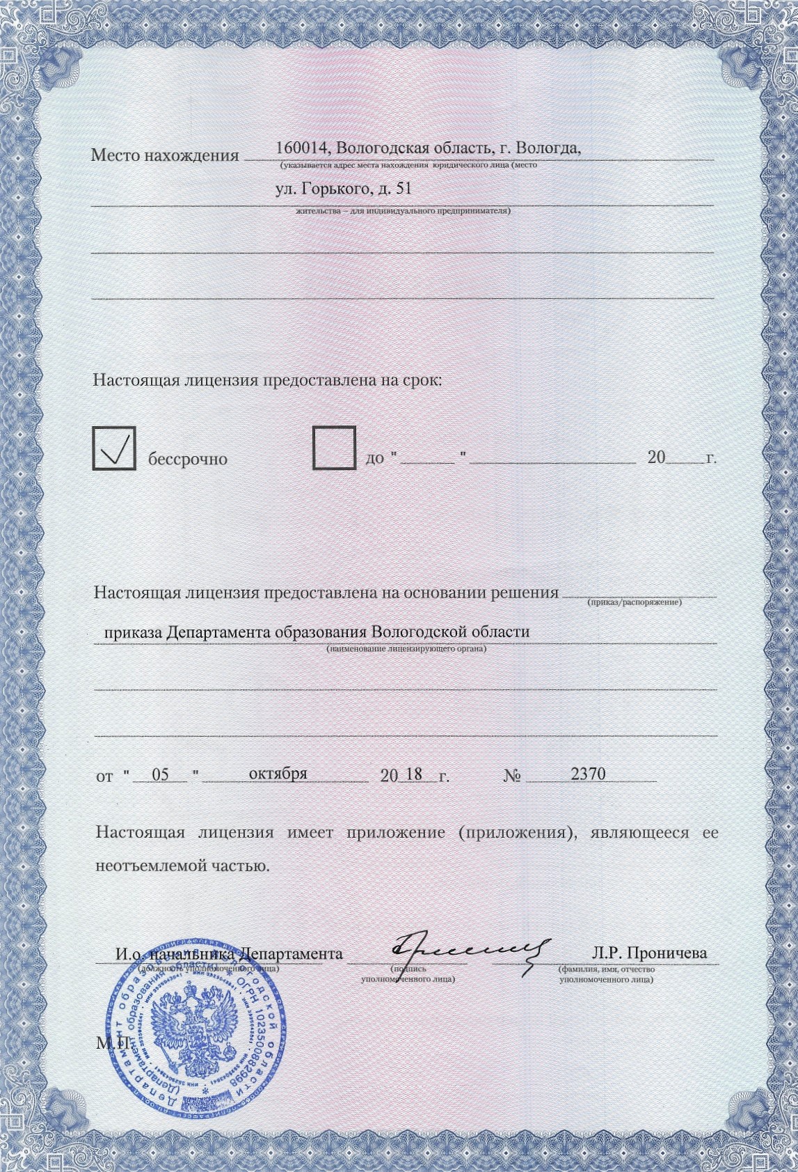 Местонахождения организации: 160014, г. Вологда, ул. Горького, дом 51 (филиалов не имеет).