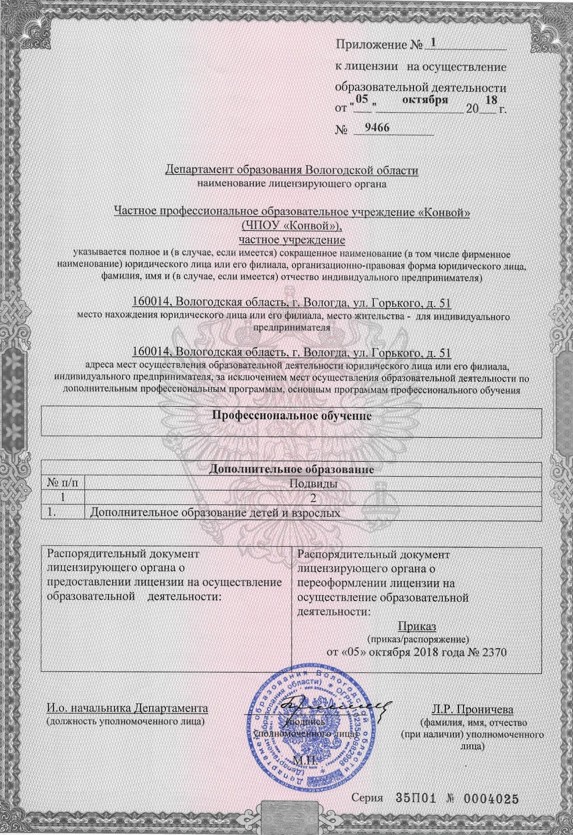 При поступление на обучение, обучающиеся и ЧПОУ «Конвой» заключают Договор на оказание платных образовательных услуг. (ссылка на копию договора на 4 разряд)